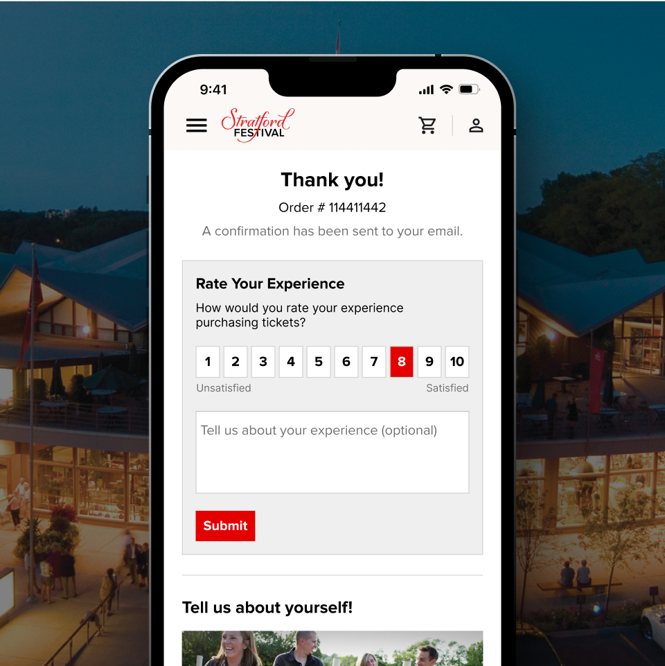 RTI integrated a comprehensive feedback function, including an NPS score feature, to gather user insights and drive continuous improvement. This proactive approach enables Stratford Festival to collect valuable feedback from users, ensuring the redesign can evolve to meet their needs and preferences. By regularly analyzing this feedback, Stratford Festival can make data-driven enhancements, consistently delivering value and improving the overall user experience.