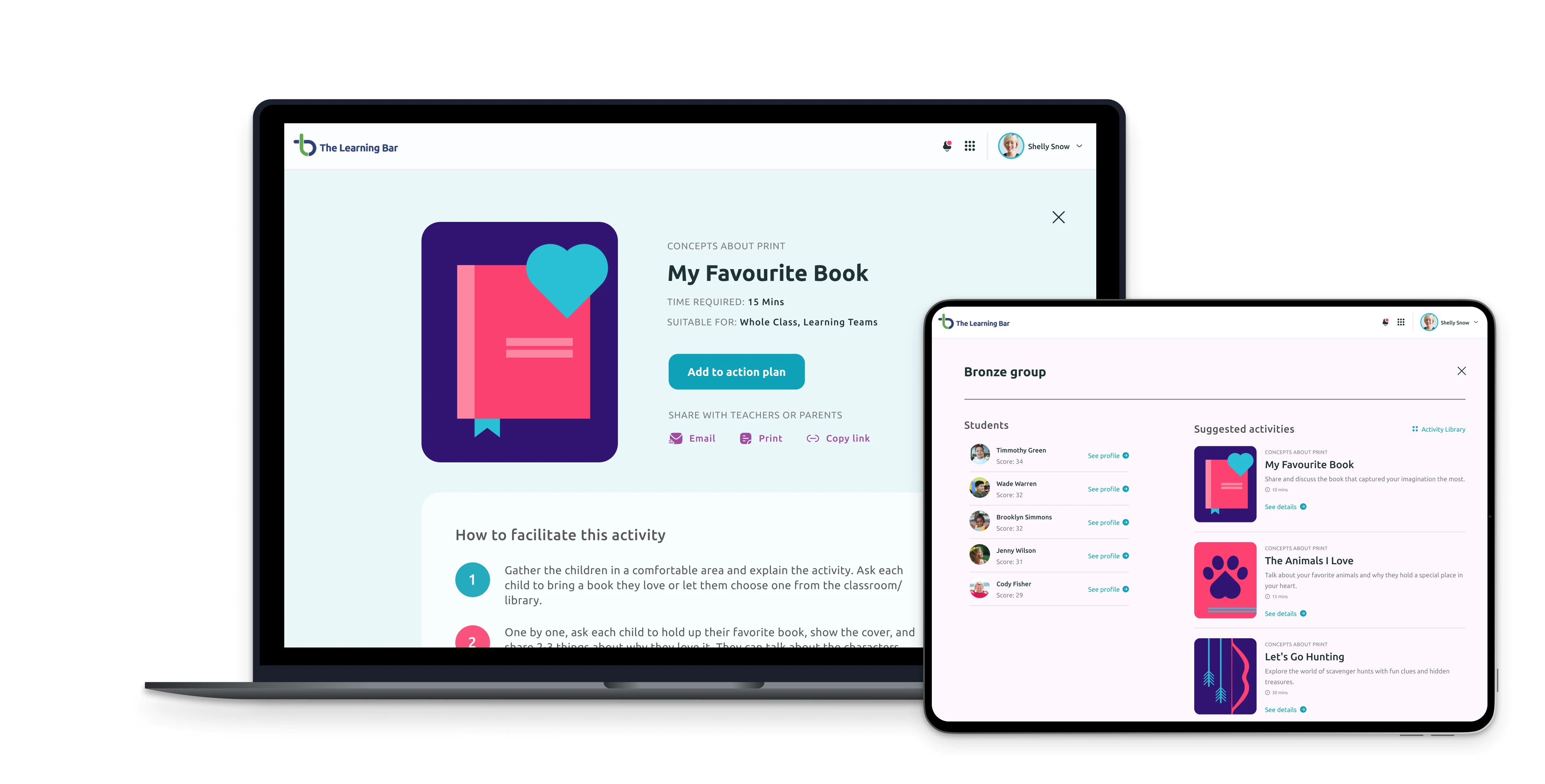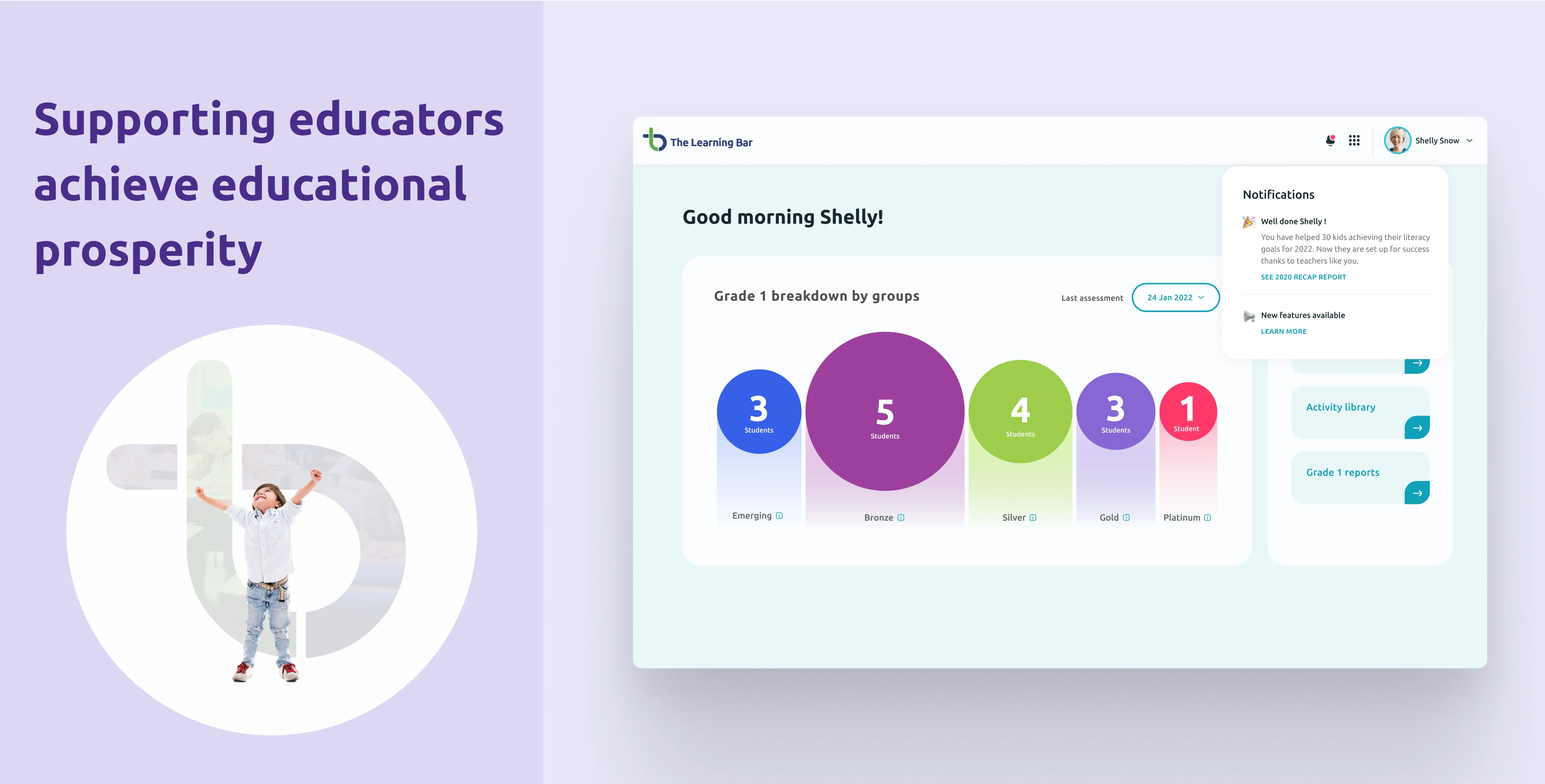We recommended enhancing the onboarding process and in-product education to continuously communicate the value of The Learning Bar’s products to teachers. This included designing better onboarding mechanisms to help teachers understand the benefits and positive impacts of the products on their classrooms and students, and easier discoverability of features and products so users were aware of the full range of available resources and tools.